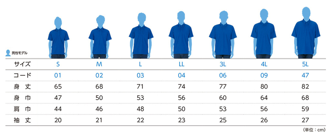 | 身巾 | 47 | 50 | 53 | 56 | 60 | 64 | 68 |