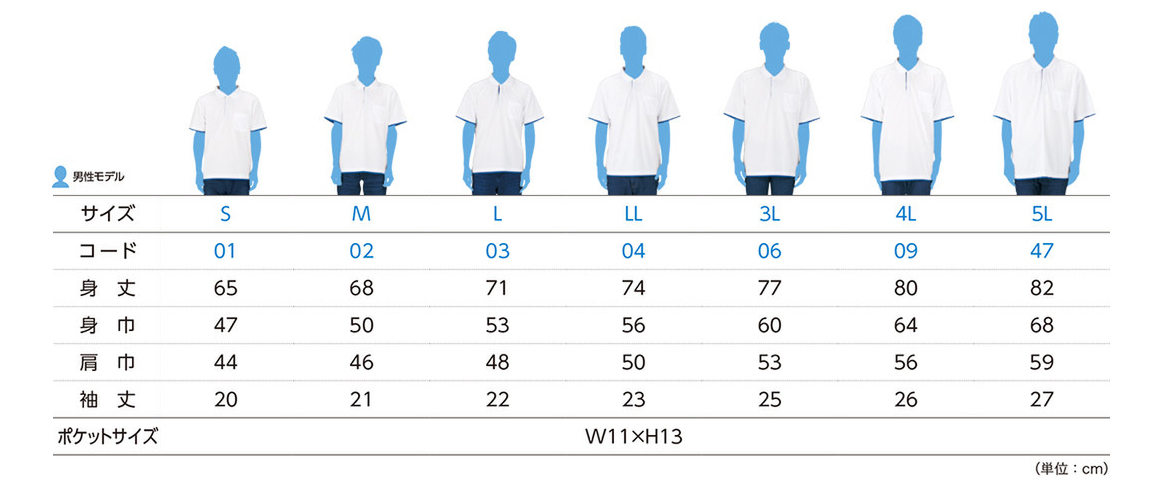 | 身巾 | 47 | 50 | 53 | 56 | 60 | 64 | 68 |