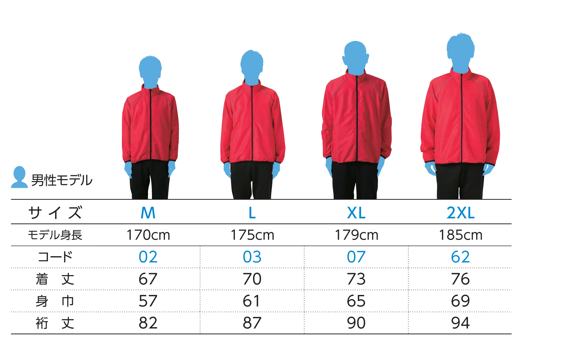 ※こちらのサイズ画像は身長が目安になっています。体重が目安ではありませんのでご注意ください。