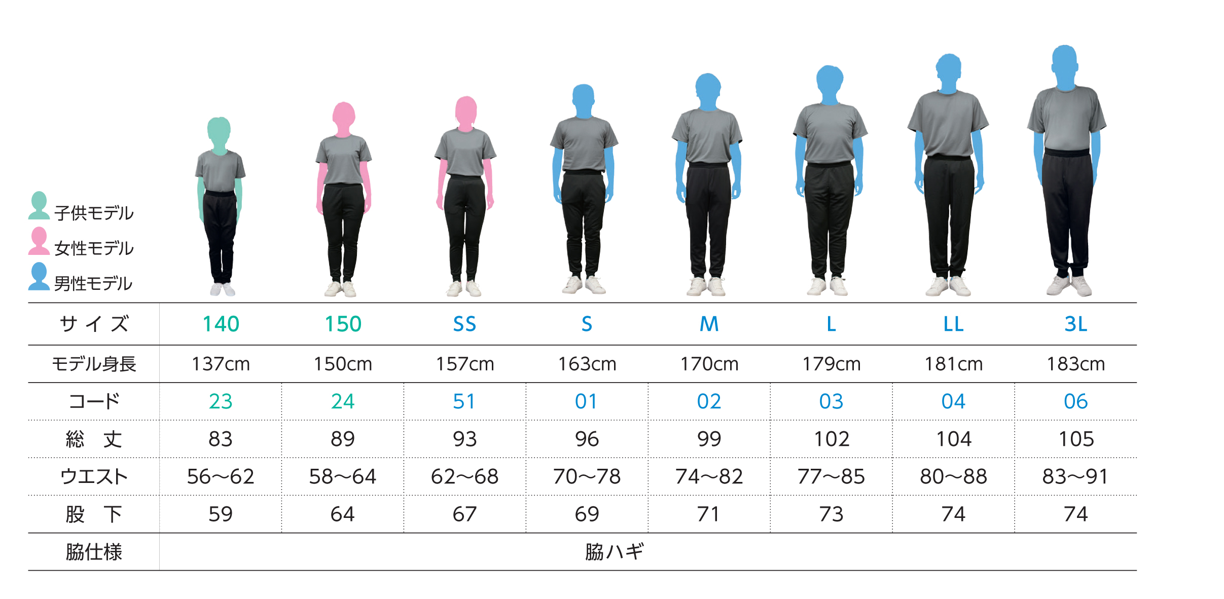 ※こちらのサイズ画像は身長が目安になっています。体重が目安ではありませんのでご注意ください。