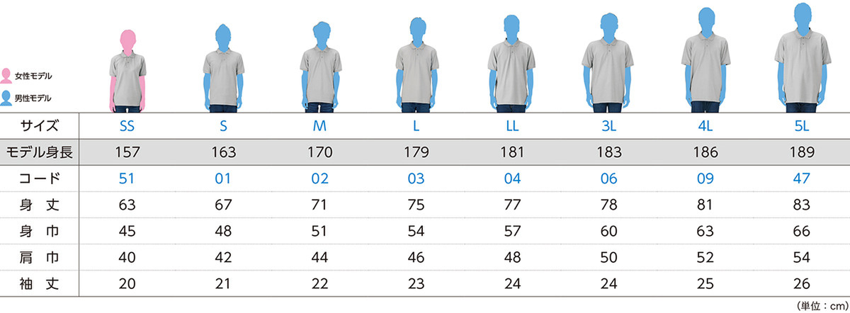 | 身巾 | 45 | 48 | 51 | 54 | 57 | 60 | 63 | 66 |